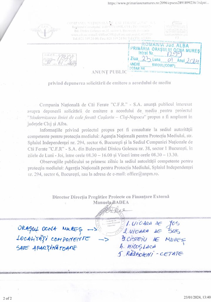 Examenul va avea loc în data de 16.01.2024,ora 1030 –proba scrisa ,la sediul Primariei orasului Ocna Mureș, str.Nicolae Iorga nr.27, jud. Alba.